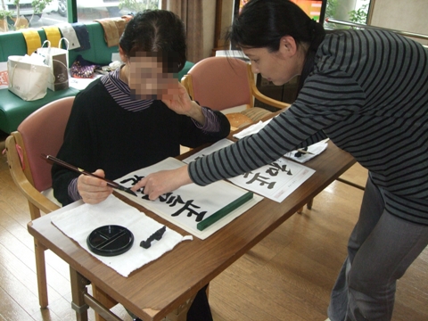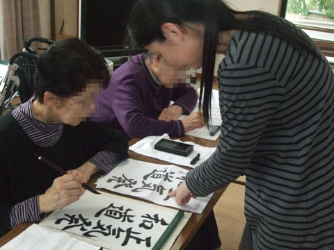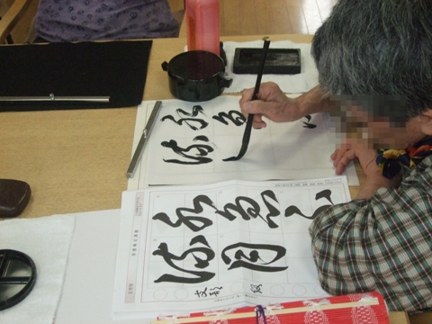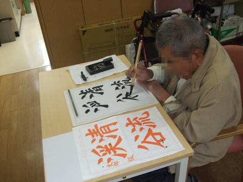 ひかりデイサービスセンターでは、体操教室、折り紙、音楽療法などなど、さまざまなイベントを行っていますが今日は書道教室の様子をご紹介します。