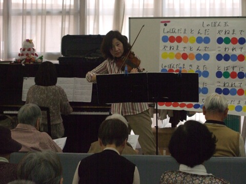 今日のデイケアセンター・南岡山ナーシングホームのイベントは、ヴァイオリン