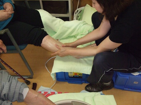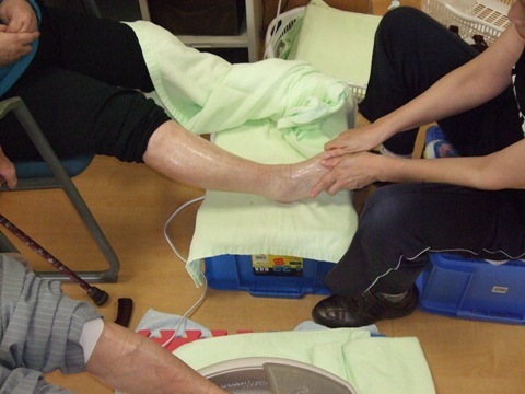 フットケアは、週ごとに曜日を変えて14:00~16:00くらいの時間に1日3人から4人に行っています。