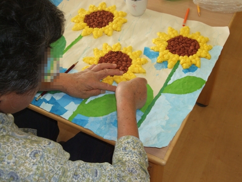 デイケアセンター・邑久ナーシングホームは、リハビリをメインに、書道、フットケア(足湯&マッサージ)、パッチワーク、絵手紙などのクラブ活動も行っております。男性の利用者様が多いのも特徴です。