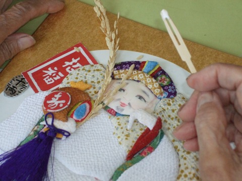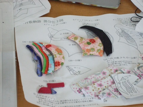 この作品を和紙ではなく布の端切れを使用して作っておられます。