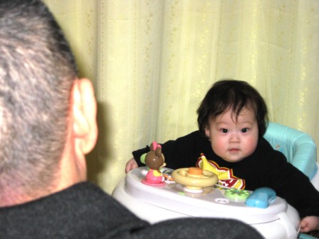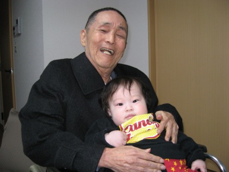 おじいちゃんに会えたうれしさからでしょう、ニコニコしてました