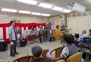 「思い出の渚」「恋の季節」など夏らしい生バンドならではの選曲で、職員3名もボーカルやサックスで参加しました。