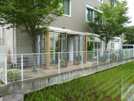 デイサービス東倉敷にオープンテラスが出来ます まずは、現在のテラスですが、これは約4年前に、私と職員の野郎2名で炎天下の中造ったものです
