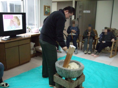 さて、グループホームコスモスでは一足早く餅つきをしました