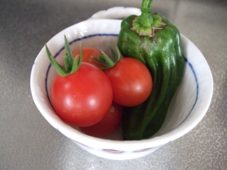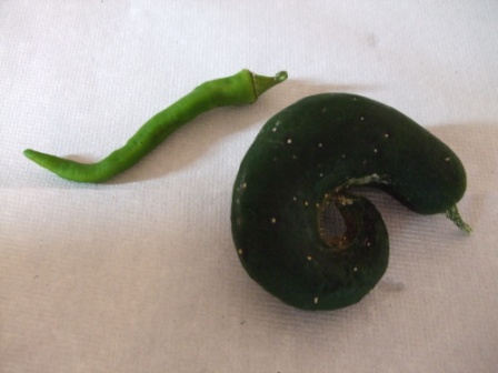 この前、収穫したのは形の悪い、きゅうり・しし唐です