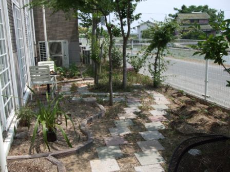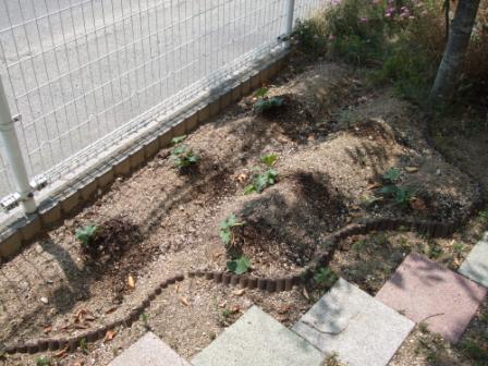以前、ご紹介した本部のお庭はキレイなお花が咲き誇っていましたが、今や野菜園となってしまいました