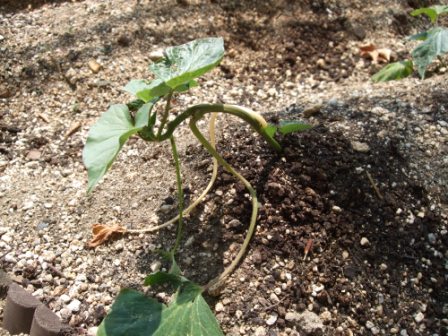 近所の方が作っている野菜は背丈もあるくらい大きく成長しているのに・・・