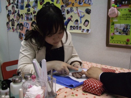 また、ひかりデイサービスセンターの出店物、ネイルアートにも学生をはじめたくさんの方々が体験をされ、皆さん喜んでいました。